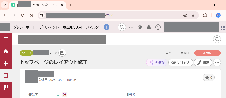 Backlogの管理画面を開いて確認すると、ちゃんとチケットが作成されているのがわかります。